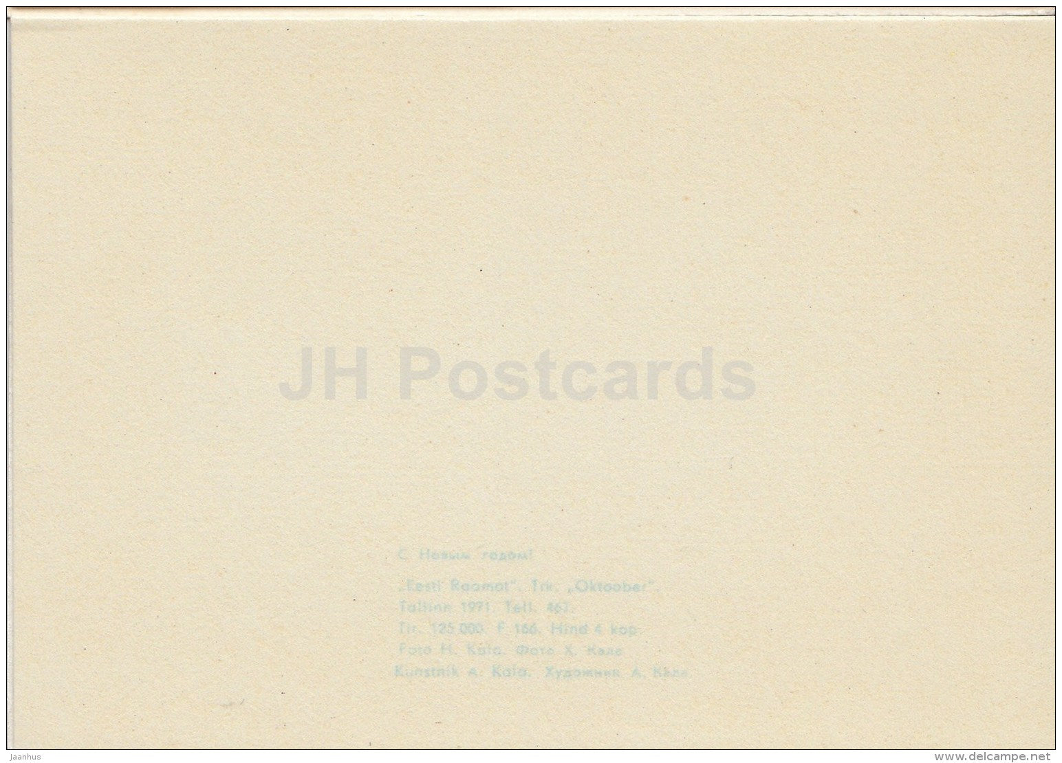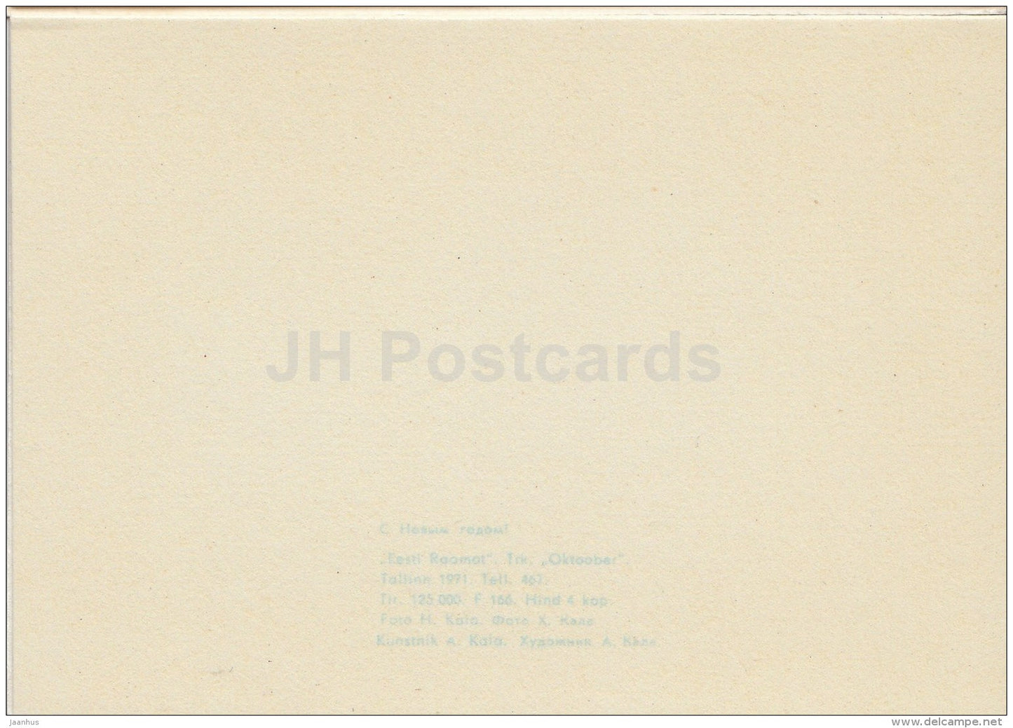 mini New Year greeting card - candle - fir cones - 1971 - Estonia USSR - used