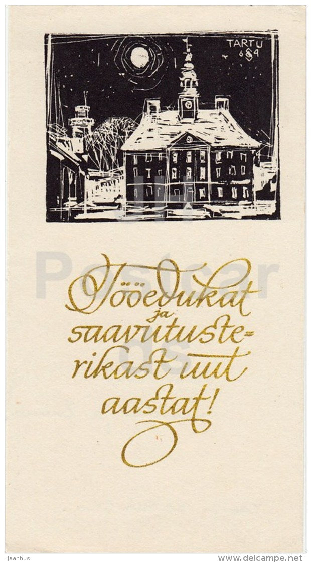 mini New Year Greeting Card - Tartu Town Hall - 1964 - Estonia USSR - used