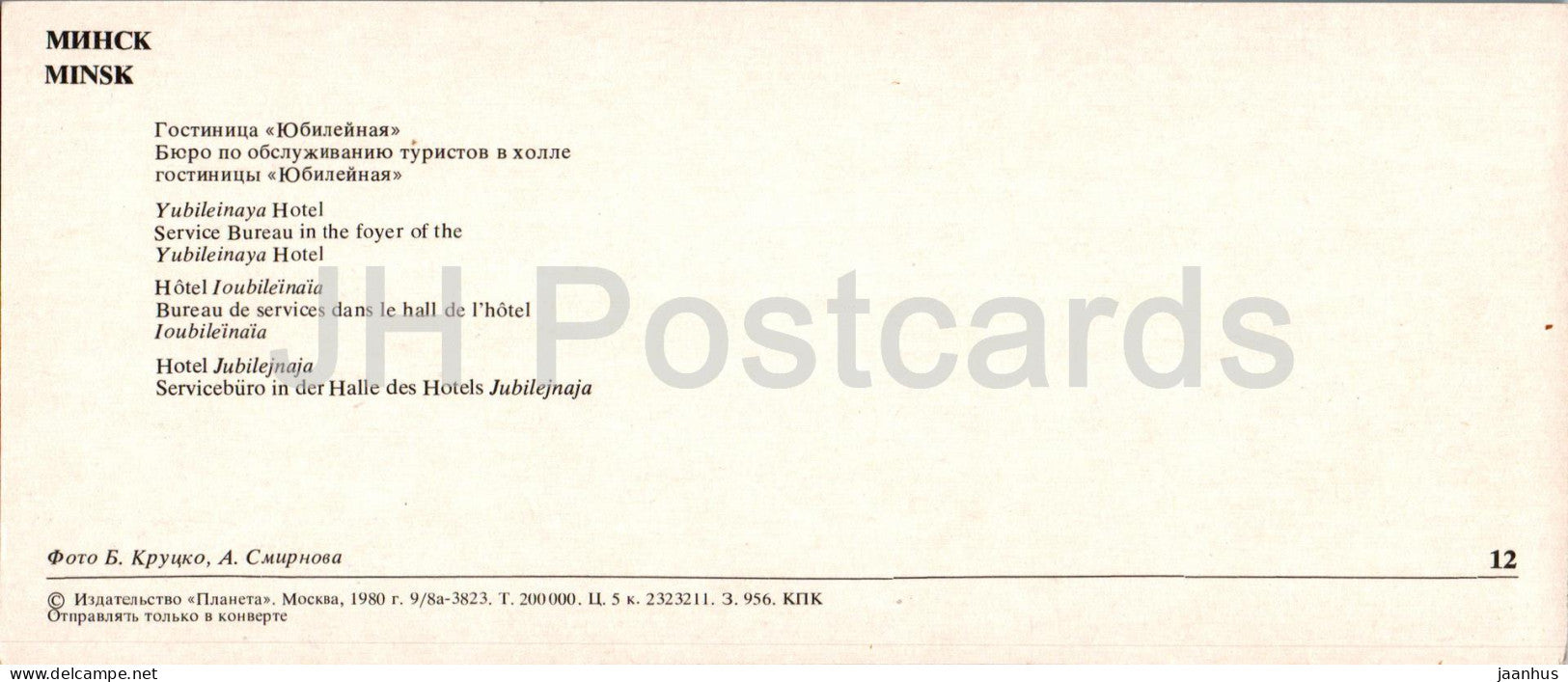 Minsk - hotel Yubileinaya (Jubilee) - Service Bureau of hotel - 1980 - Belarus USSR - unused