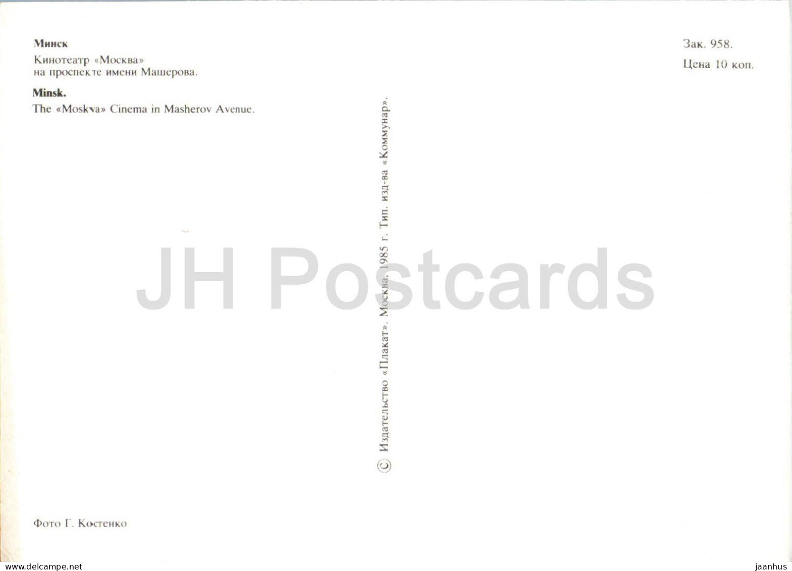 Minsk - The Moskva Cinema theatre in Masherov Avenue - 1985 - Belarus USSR - unused