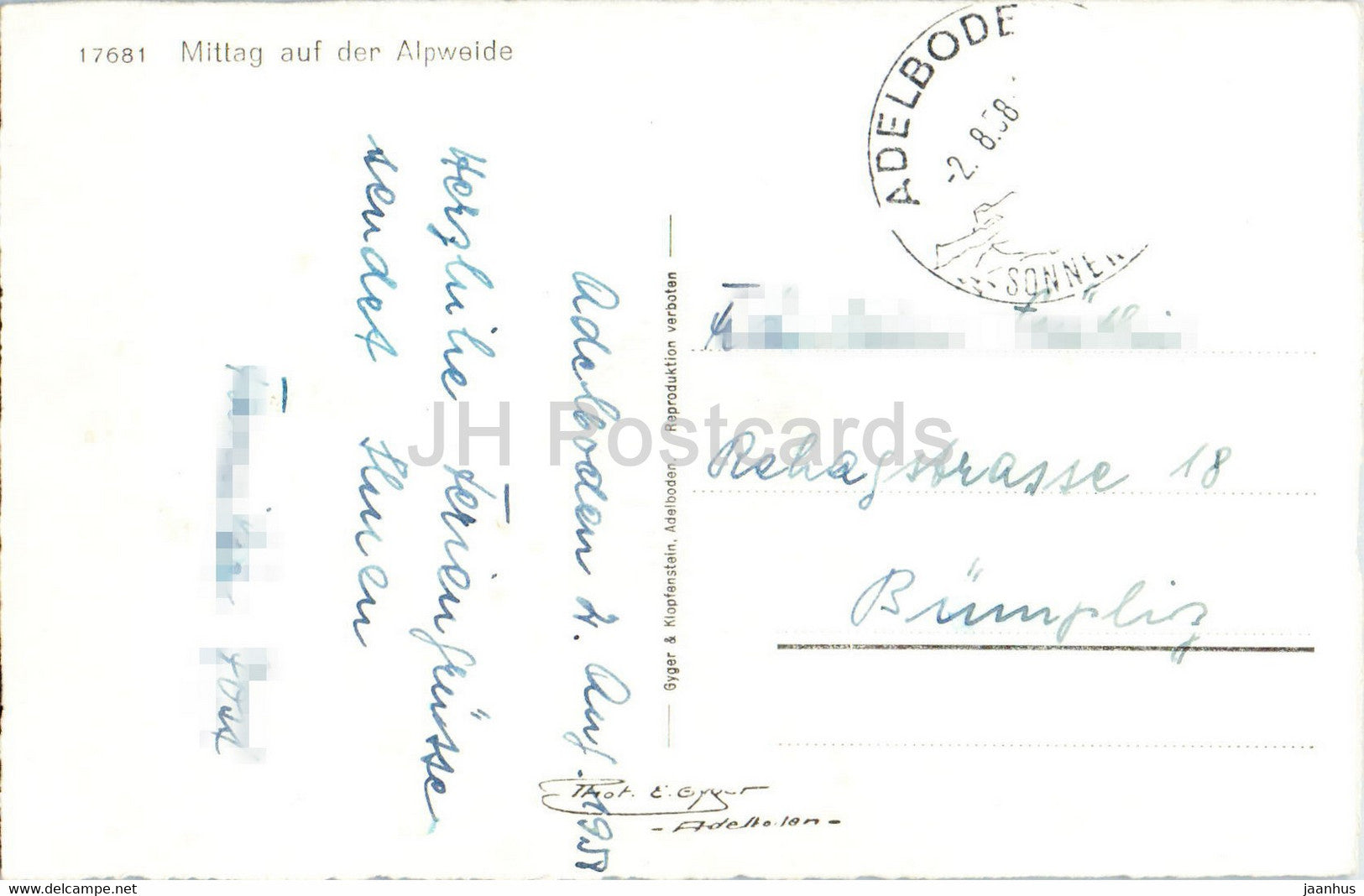 Mittag auf der Alpweide - animals - cow - 17681 - 1958 - old postcard - Switzerland - used
