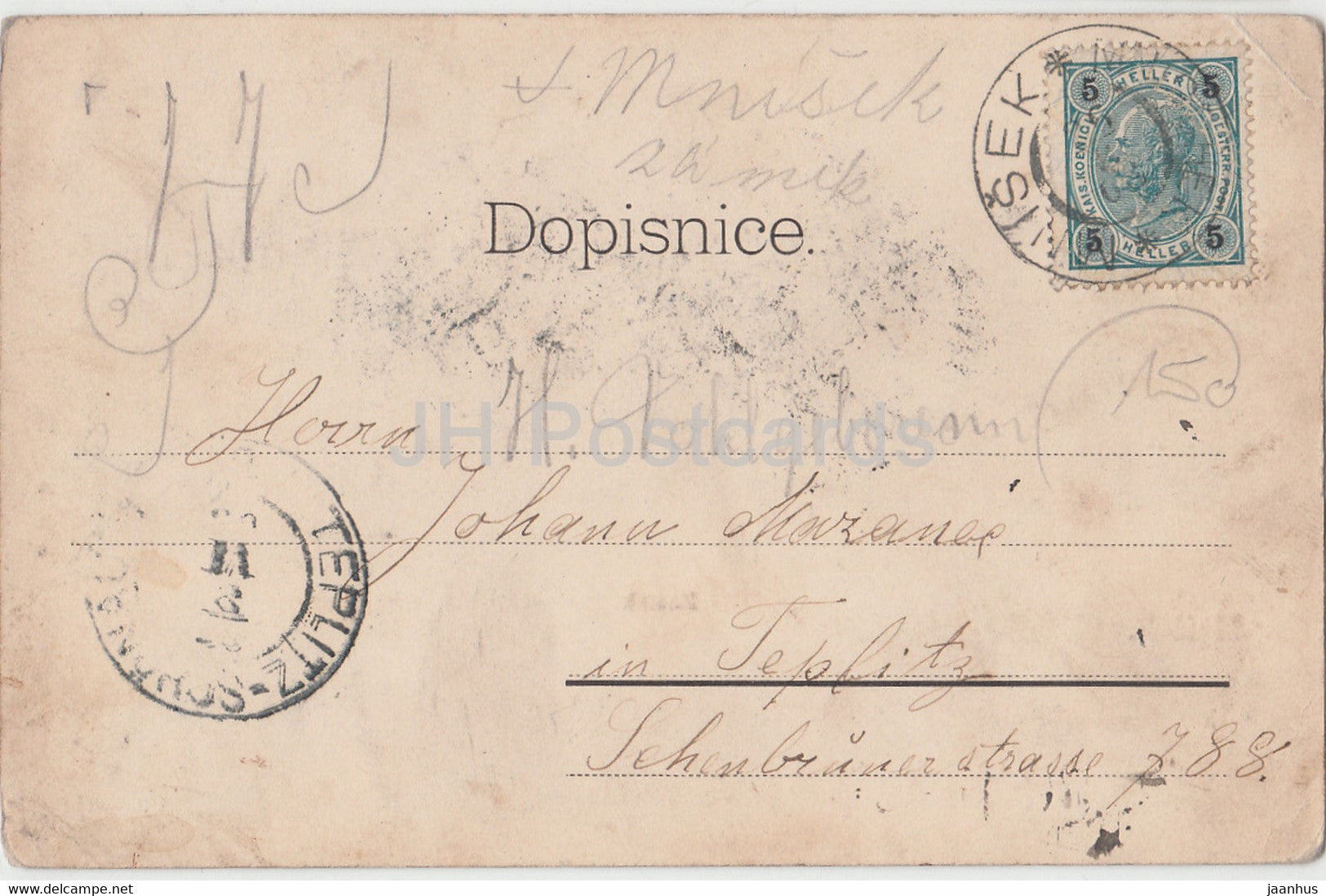 Mnisek - Zamek - castle - old postcard - Czech Republic - used