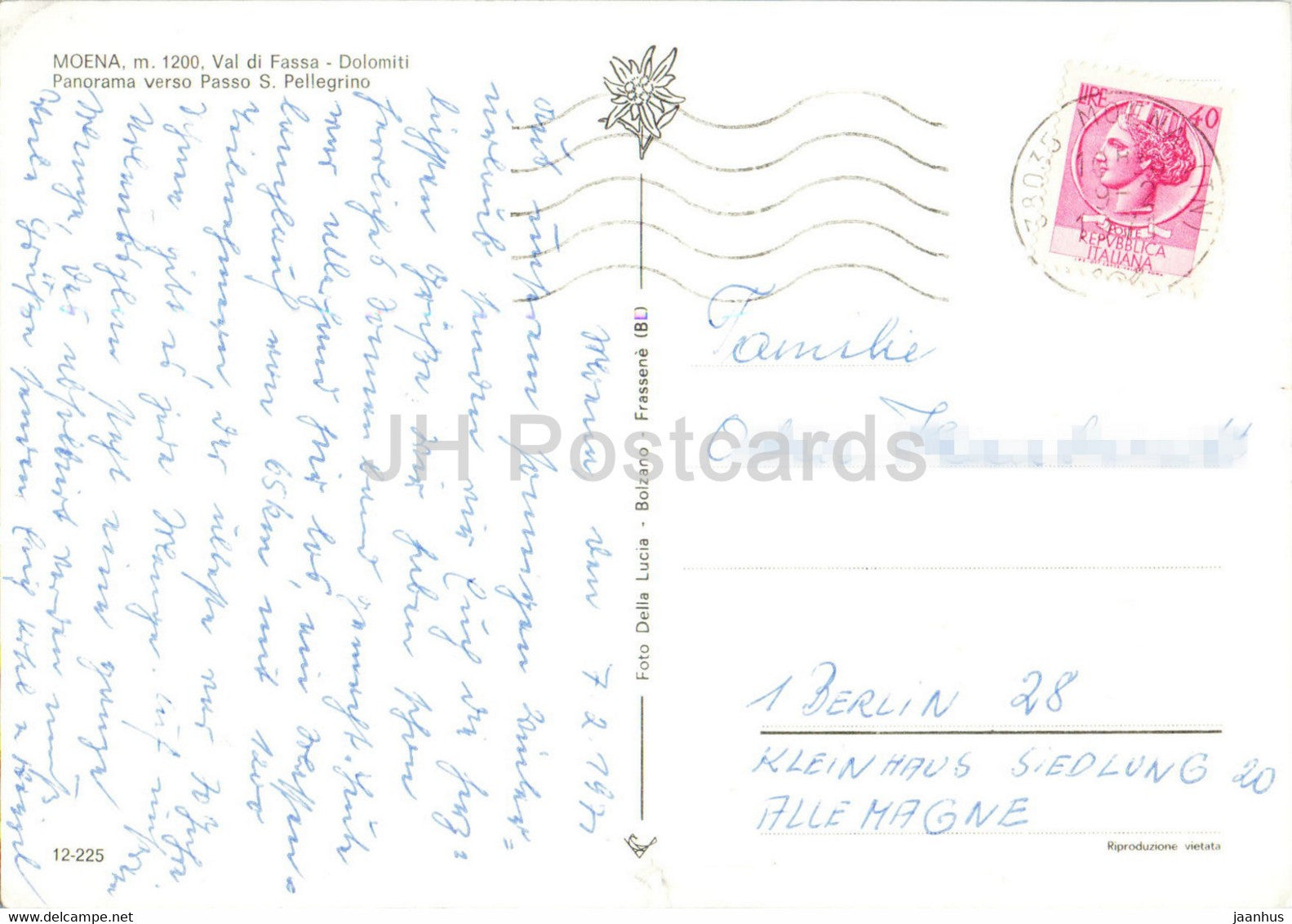 Moena 1200 m - Val di Fassa - Dolomiti - Panorama verso Passo S Pellegrino - 1971 - Italy - used