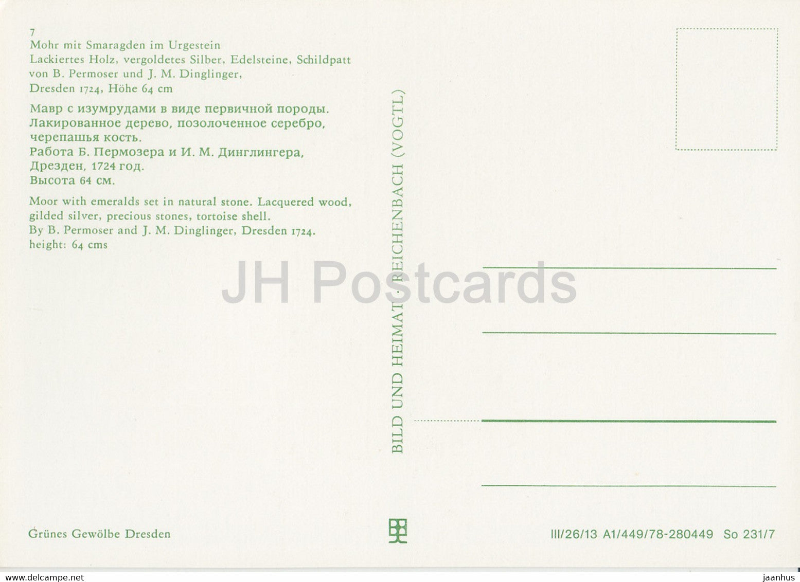 Mohr mit Smaragden im Urgestein - 1 - Moor with emeralds set in natural stone - Grunes Gewolbe - DDR Germany - unused