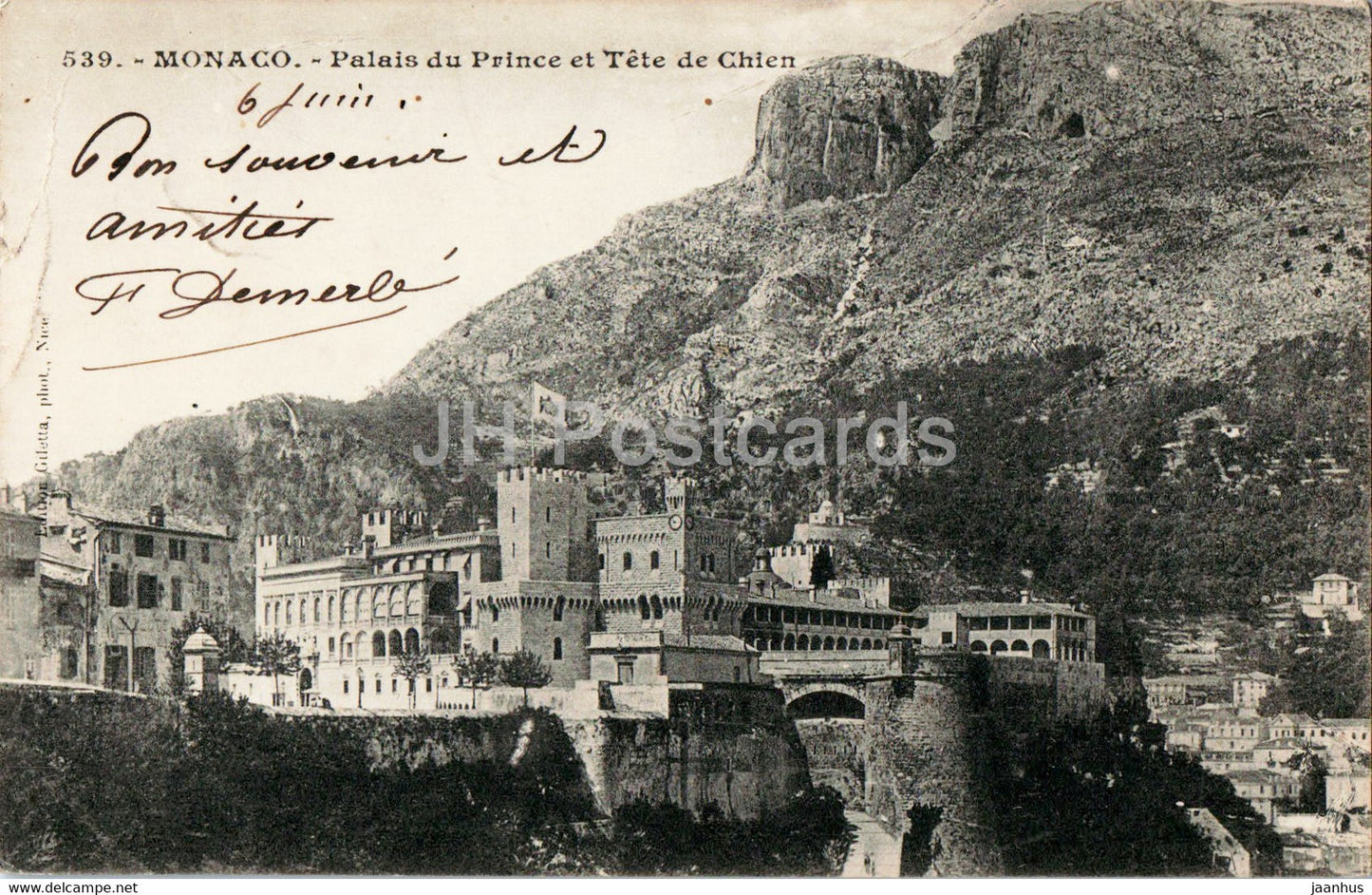 Monaco - Palais du Prince et Tete de Chien - 539 - old postcard - 1903 - Monaco - used