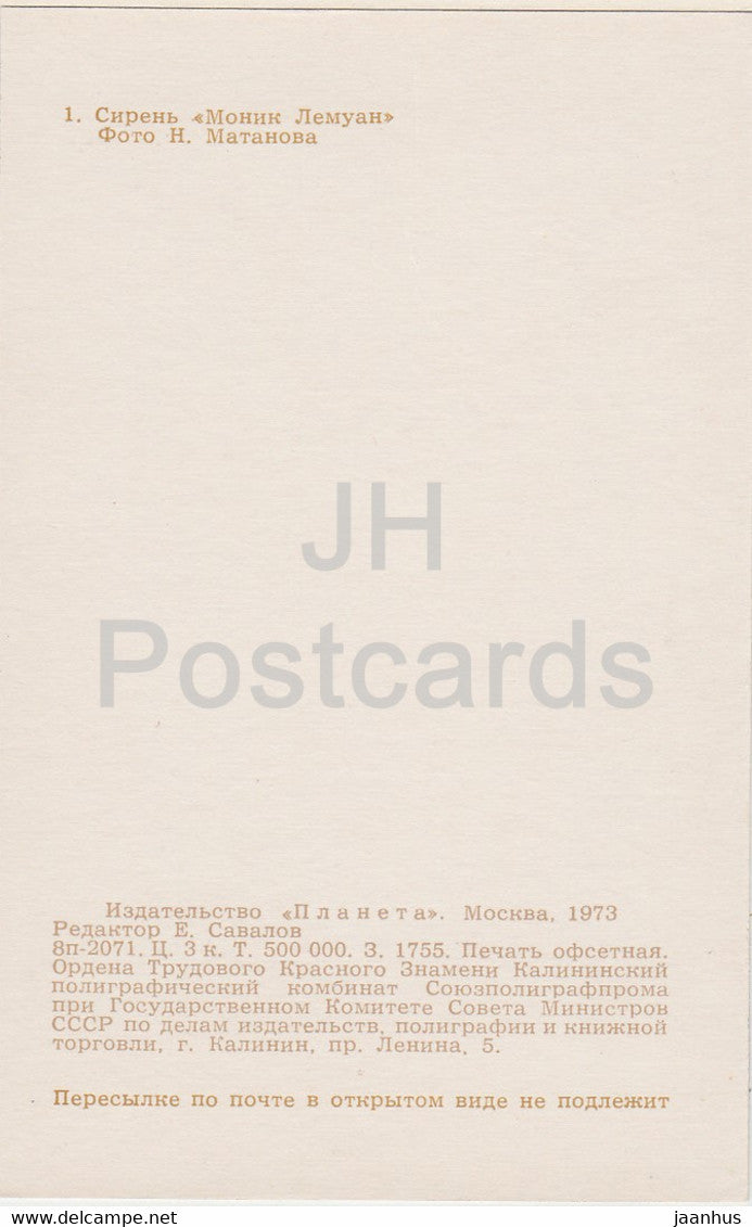 Monique Lemoine - Lilac - Flowers - 1973 - Russia USSR - unused