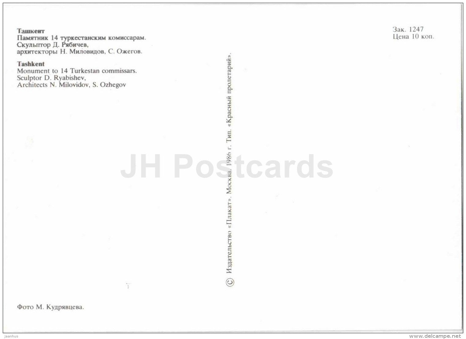 monument to 14 Turkestan comissars - Tashkent - 1986 - Uzbekistan USSR - unused