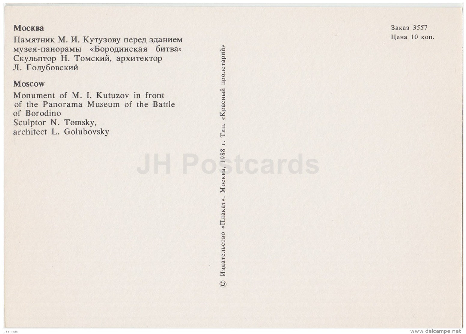 monument to Kutuzov in front of the Panorama Museum of the Battle of Borodino - Moscow - 1988 - Russia USSR - unused