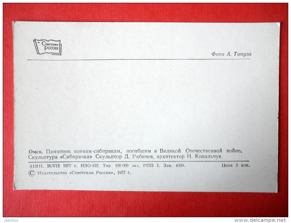 monument to siberian soldiers killed in WWII - Omsk - 1977 - USSR Russia - unused