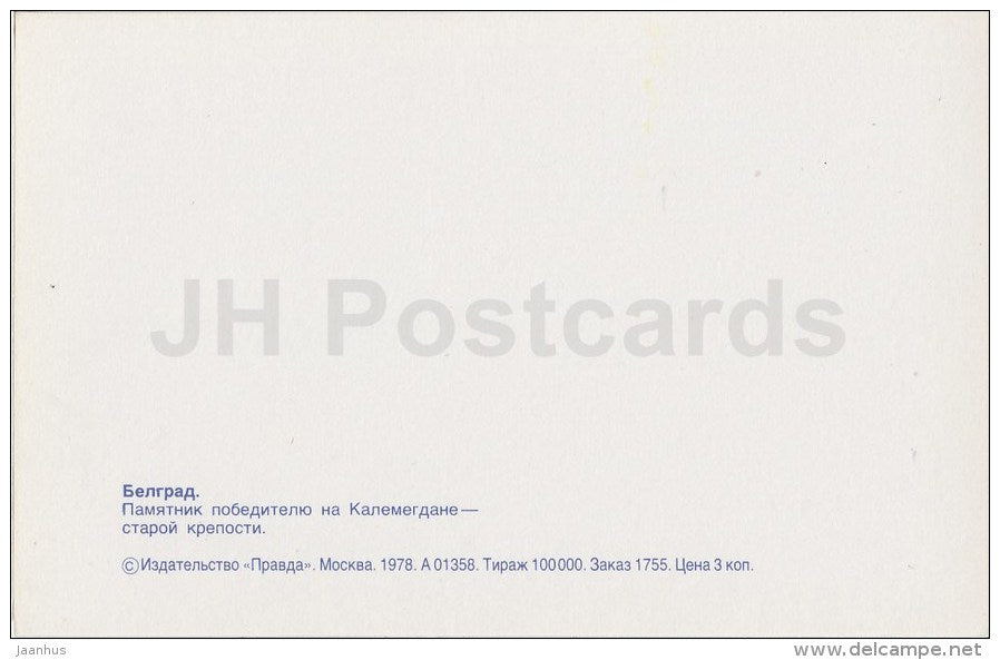 Monument to Winners in Kalemegdan - old castle - Belgrade - 1978 - Serbia - Yugoslavia - unused