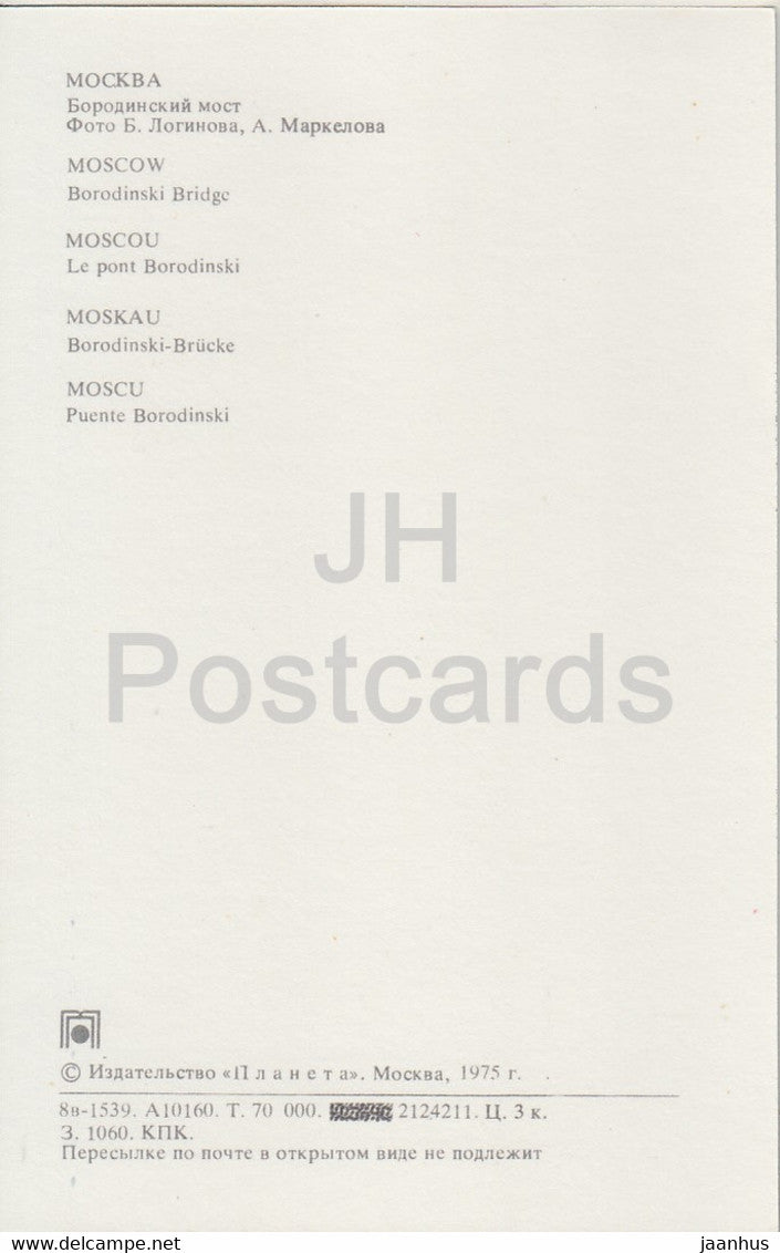 Moscow - Borodinski bridge - 1975 - Russia USSR - unused