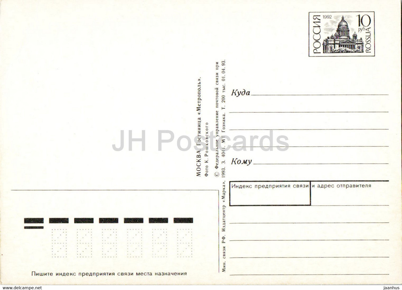 Moscow - hotel Metropol - cars - postal stationery - 1993 - Russia - unused