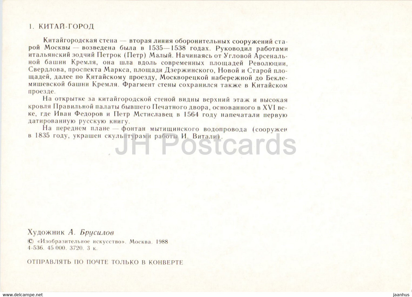 Moscow - Kitay Gorod - China Town - illustration by A. Brusilov - 1988 - Russia USSR - unused
