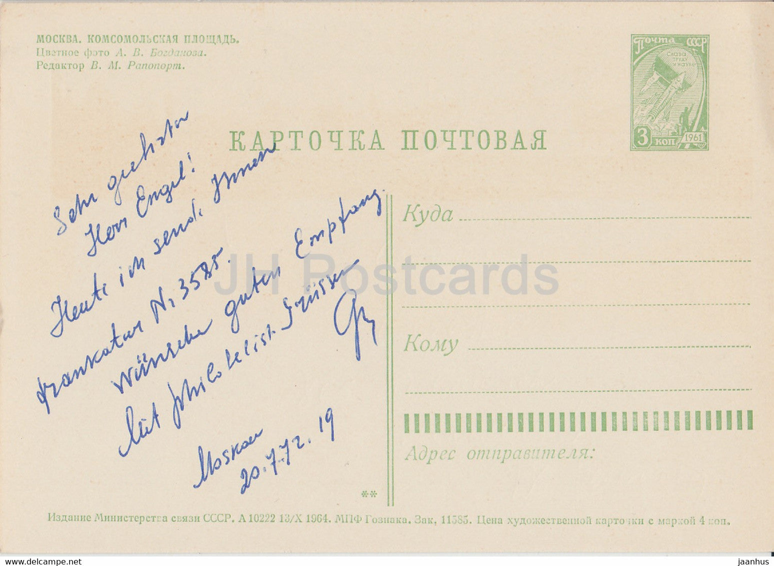 Moscow - Komsomol square - postal stationery - 1964 - Russia USSR - used