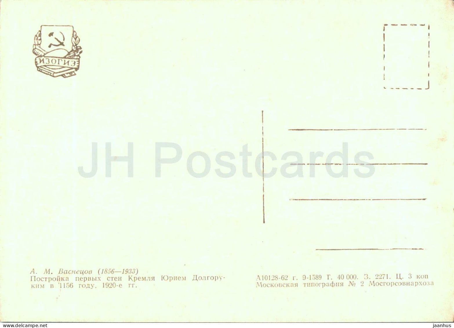 Moscow Kremlin - contruction of first walls of the Kremlin - illustration by A. Vasnetsov - 1962 - Russia USSR - unused