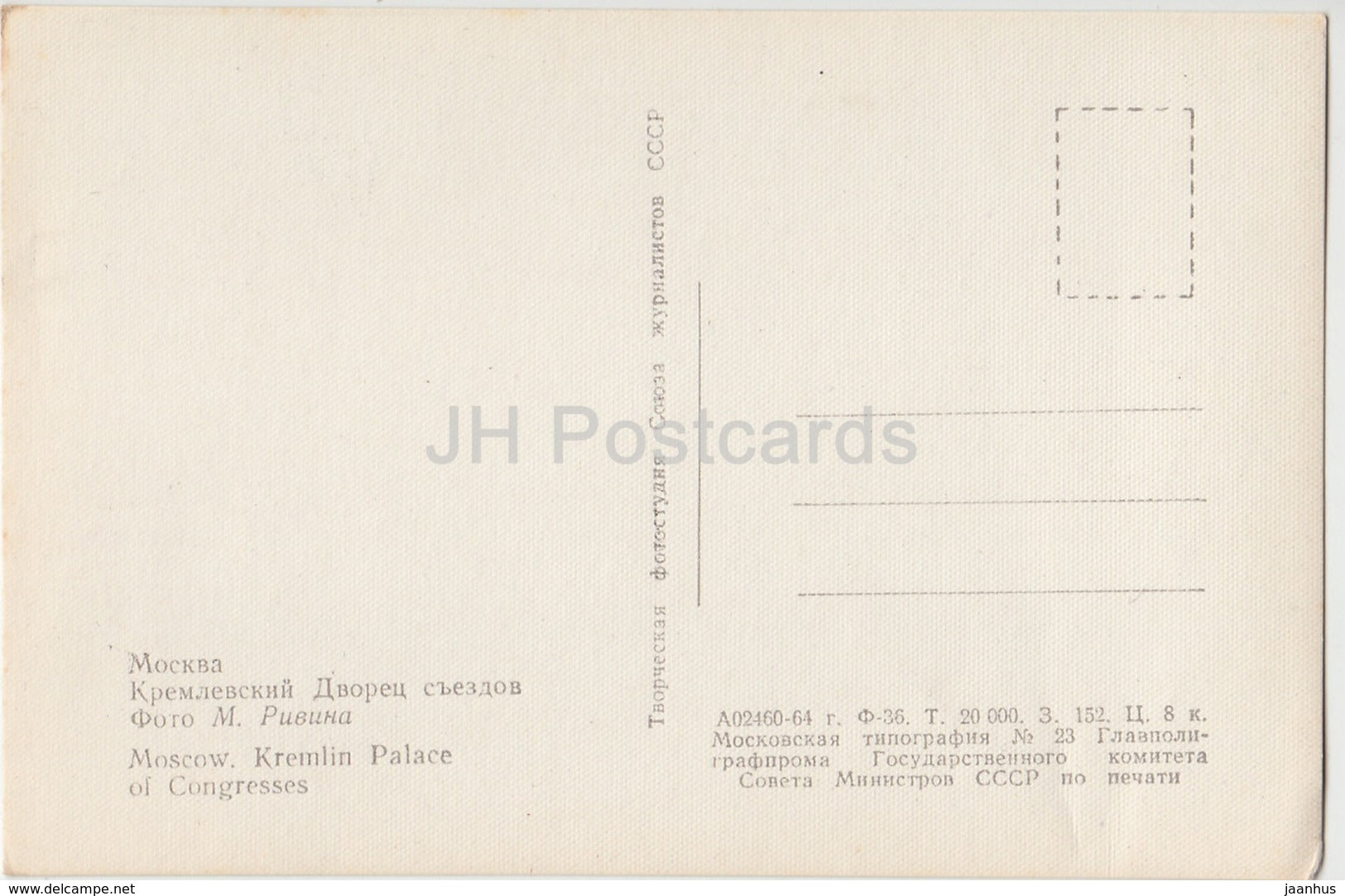 Moscow - Kremlin Palace of Congresses - 1964 - Russia USSR - unused