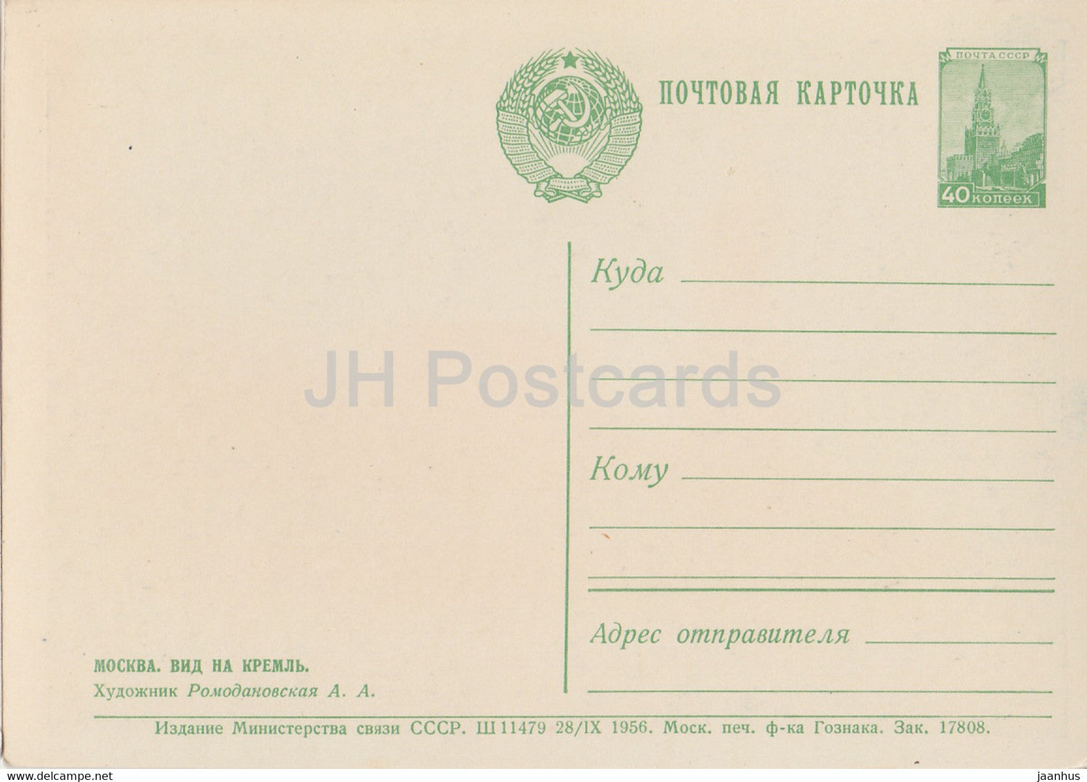 Moscow - Kremlin view - illustration by A. Romodanovskaya - postal stationery - 1956 - Russia USSR - unused