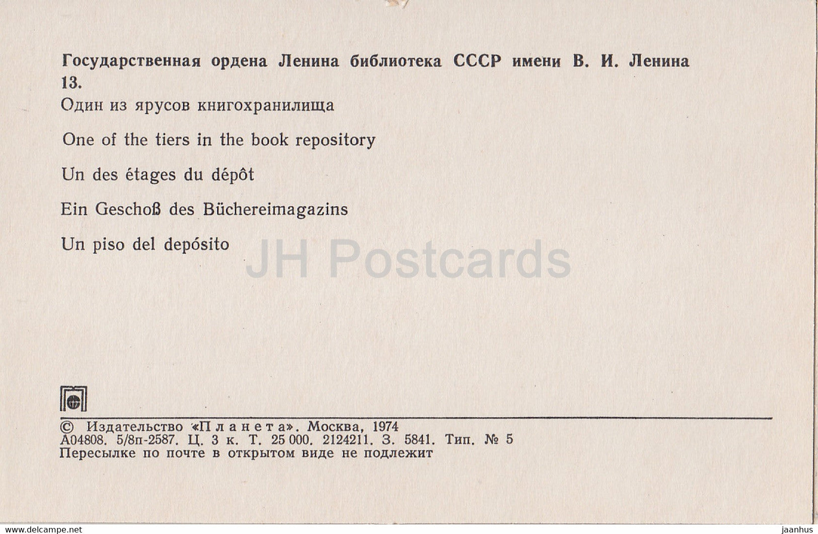 Moscow - Lenin State Library - One of the Tiers in the book repository - 1974 - Russia USSR - unused