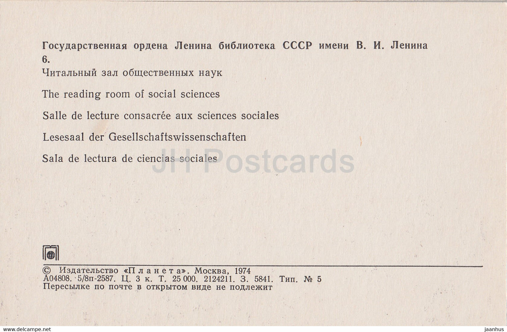 Moscow - Lenin State Library - The Reading Room of Social Sciences - 1974 - Russia USSR - unused