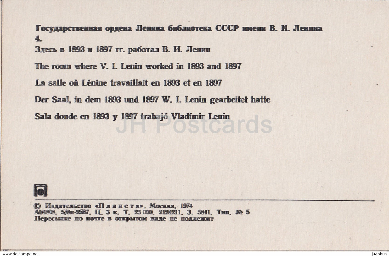 Moscow - Lenin State Library - The Room where Lenin worked in 1893 and 1897 - 1974 - Russia USSR - unused