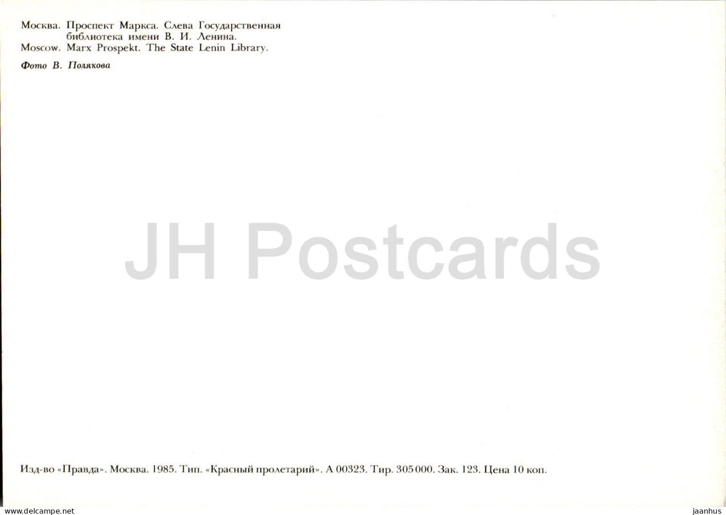 Moscow - Marx prospekt - The State Lenin Library - 1985 - Russia USSR - unused