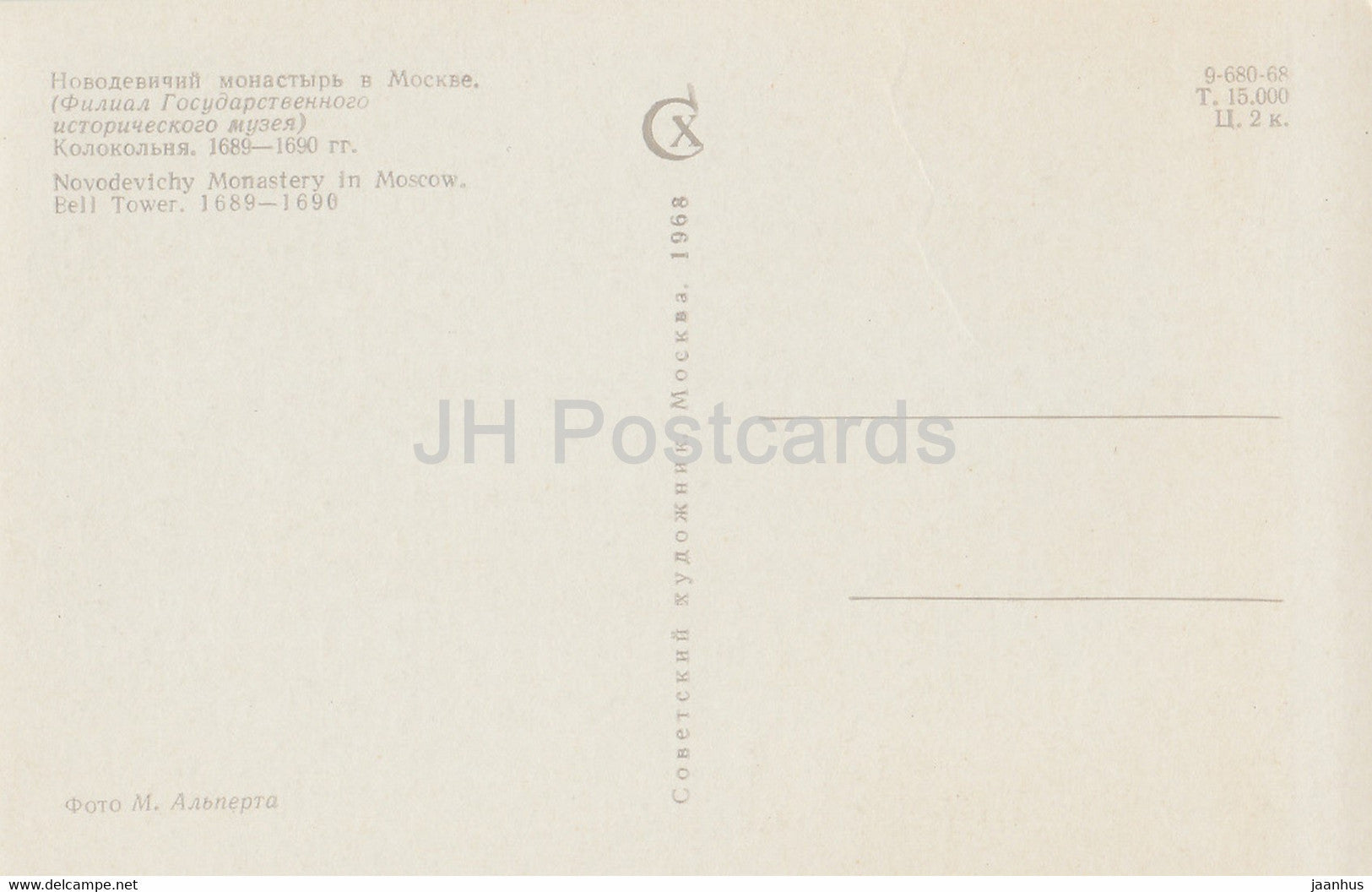 Moscow - Novodevichy Convent - monastery - Bell Tower - 1968 - Russia USSR - unused