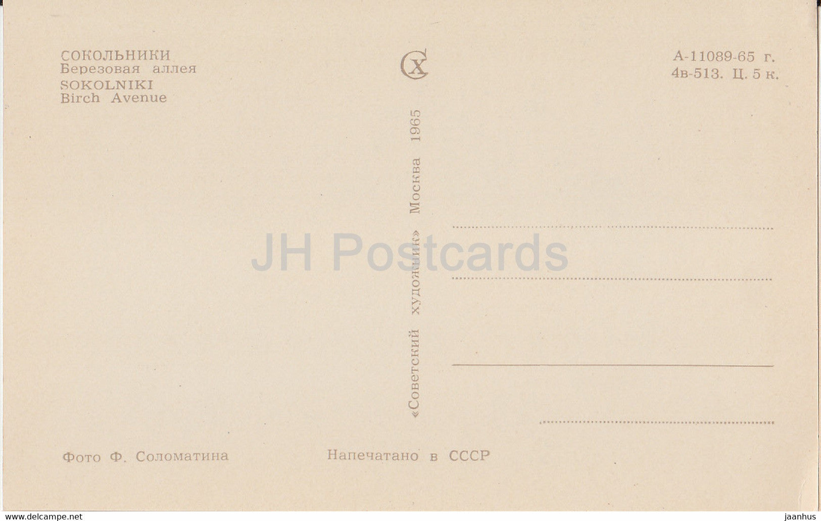 Moscow - Sokolniki - Birch Avenue - 1965 - Russia USSR - unused