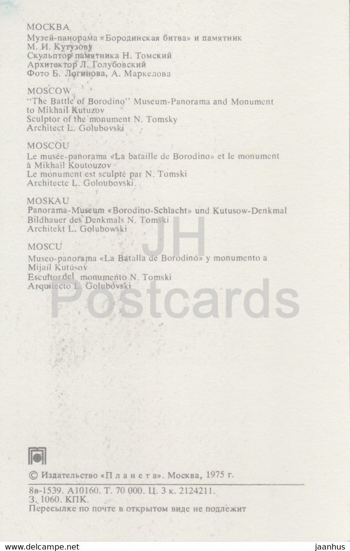 Moscow - The Battle of Borodino museum panorama - monument to Kutuzov - 1975 - Russia USSR - unused