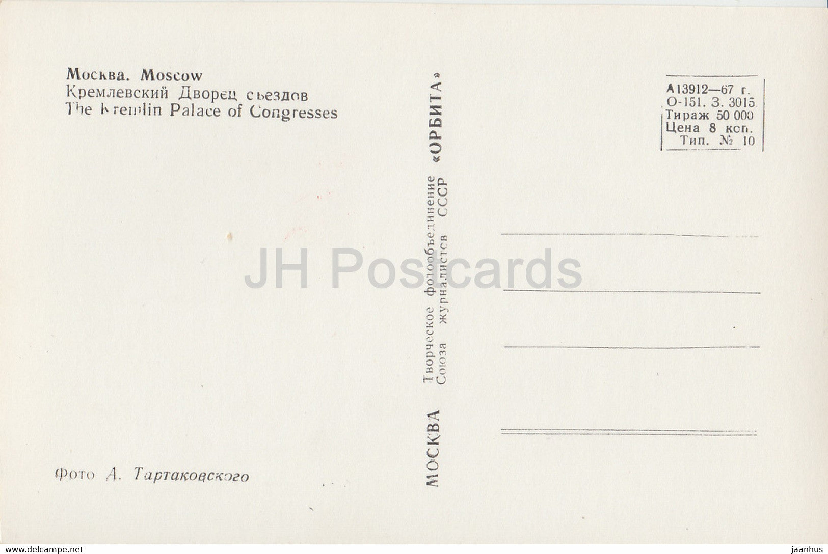 Moscow - The Kremlin Palace of Congresses - 1967 - Russia USSR - unused