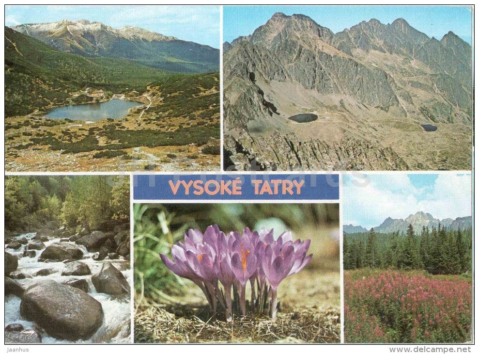 mountains - flowers - river - lake - Vysoke Tatry - High Tatras - Czechoslovakia - Slovakia - used 1986