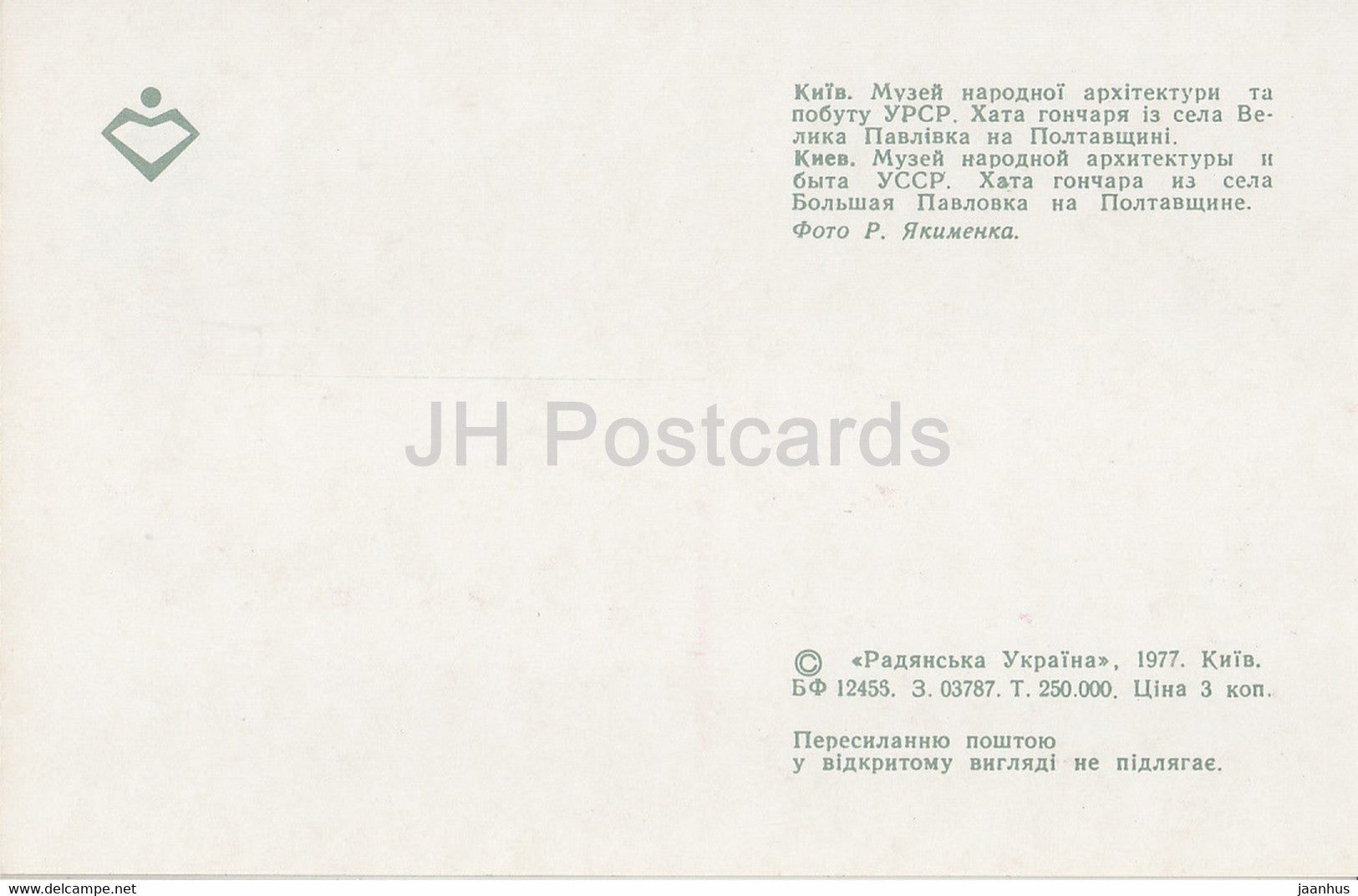 Museum of Ukrainian Folk Architecture and Life - potter's hut from Bolshaya Pavlovka - 1977 - Ukraine USSR - unused