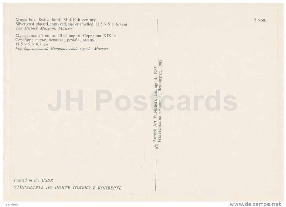 Music Box , Switzerland - Silver - Jewellery - 1985 - Russia USSR - unused
