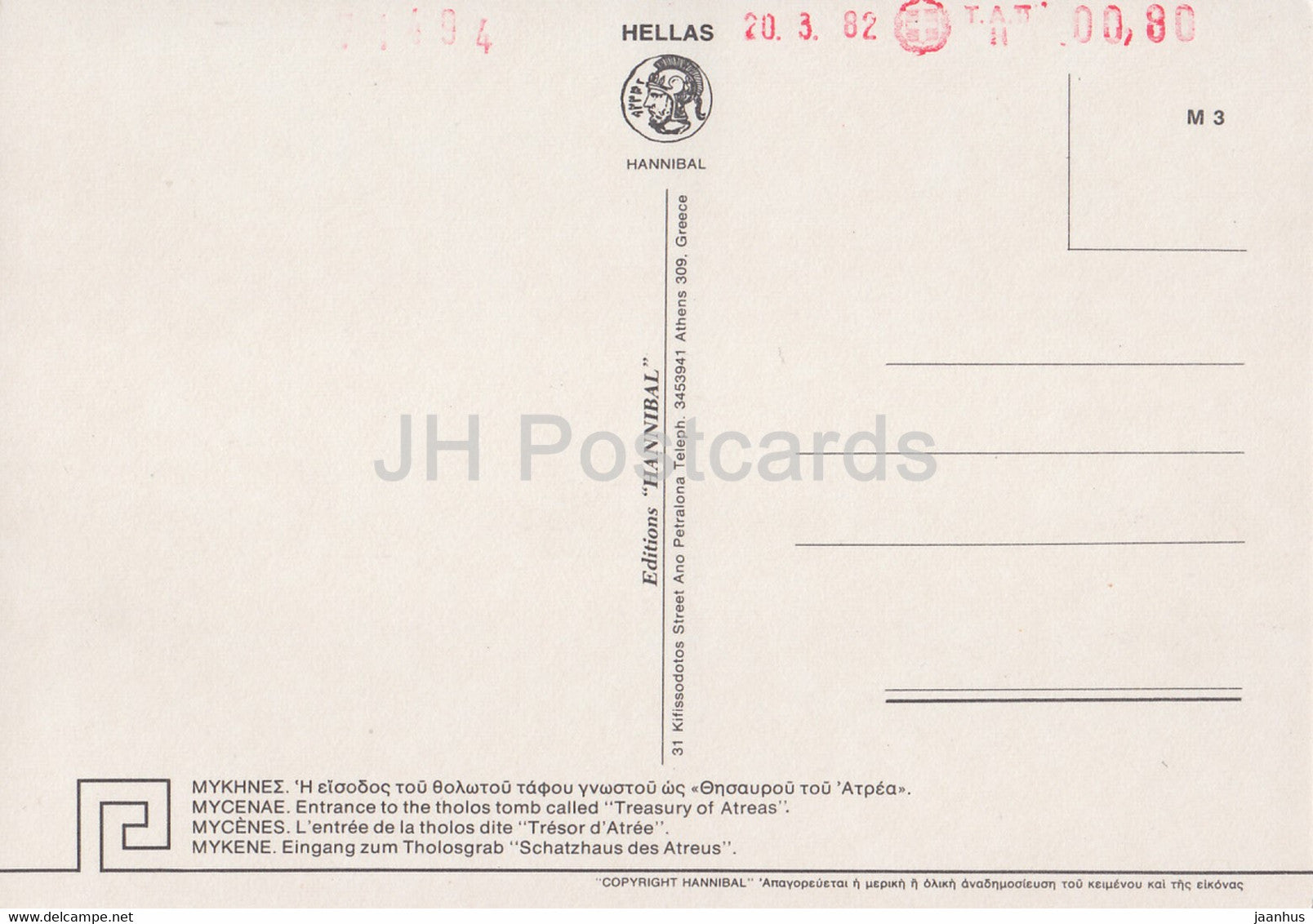 Mycenae - Entrance to the tholos tomb called Treasury of Atreas - 1 - Ancient Greece - 1982 - Greece - unused