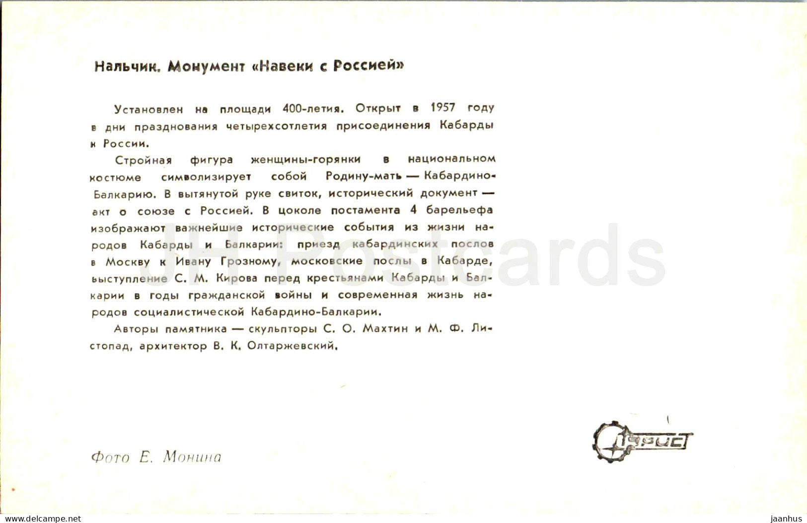 Nalchik - Forever with Russia monument - Kabardino-Balkaria - Turist - 1973 - Russia USSR - unused