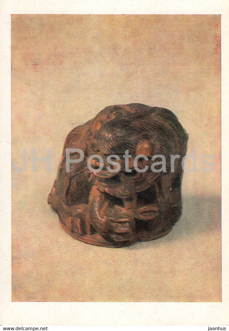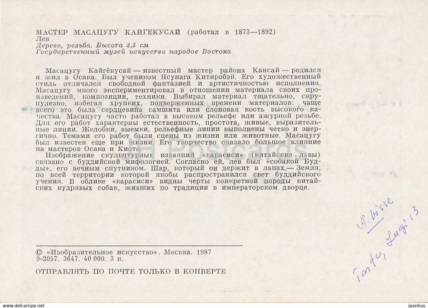 Netsuke by Kaigyokusai Masatsugu - Lion - wood - Japanese art - 1987 - Russia UUSR - unused