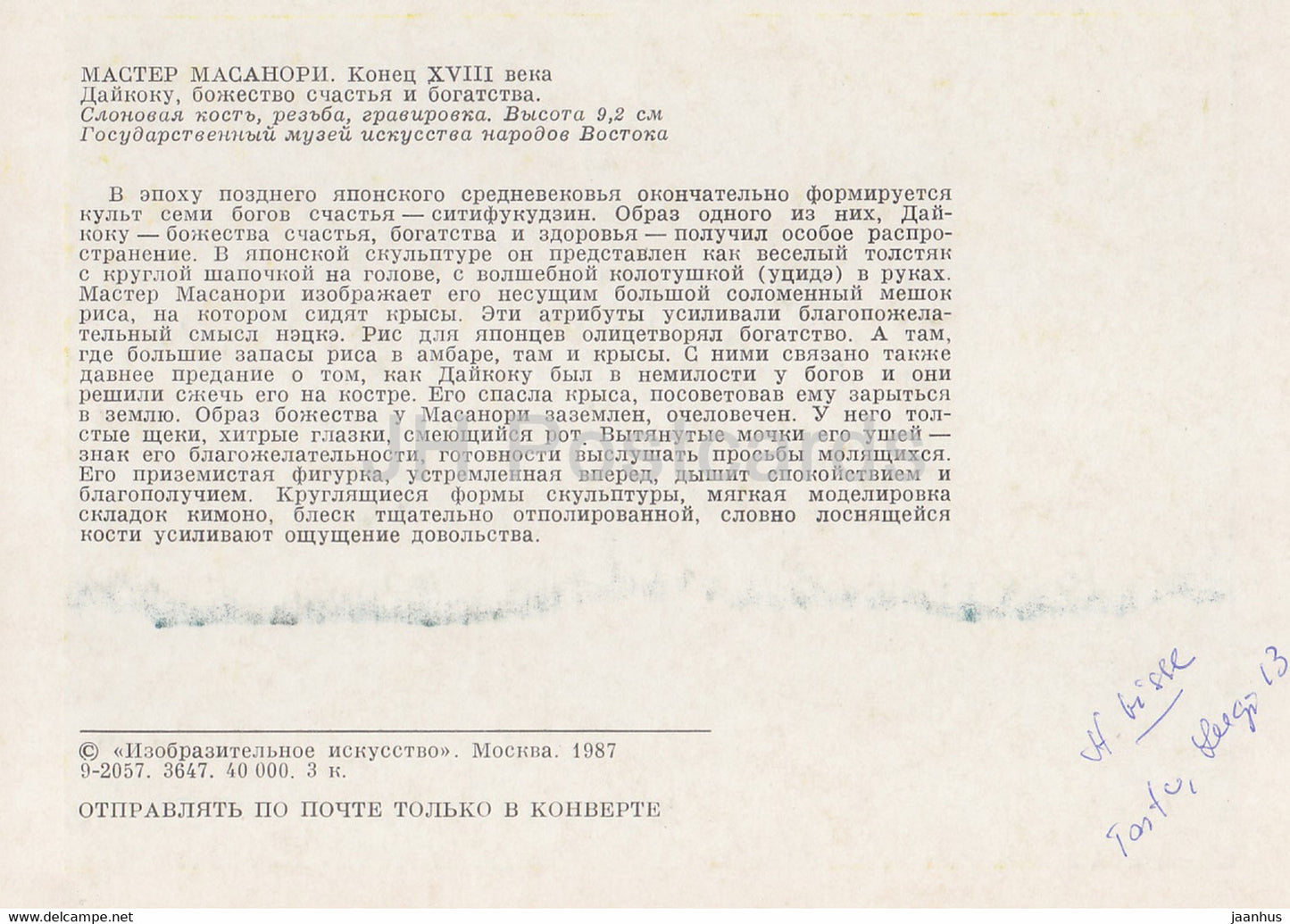 Netsuke by Master Masanori - Daikokuten - ivory - Japanese art - 1987 - Russia UUSR - unused