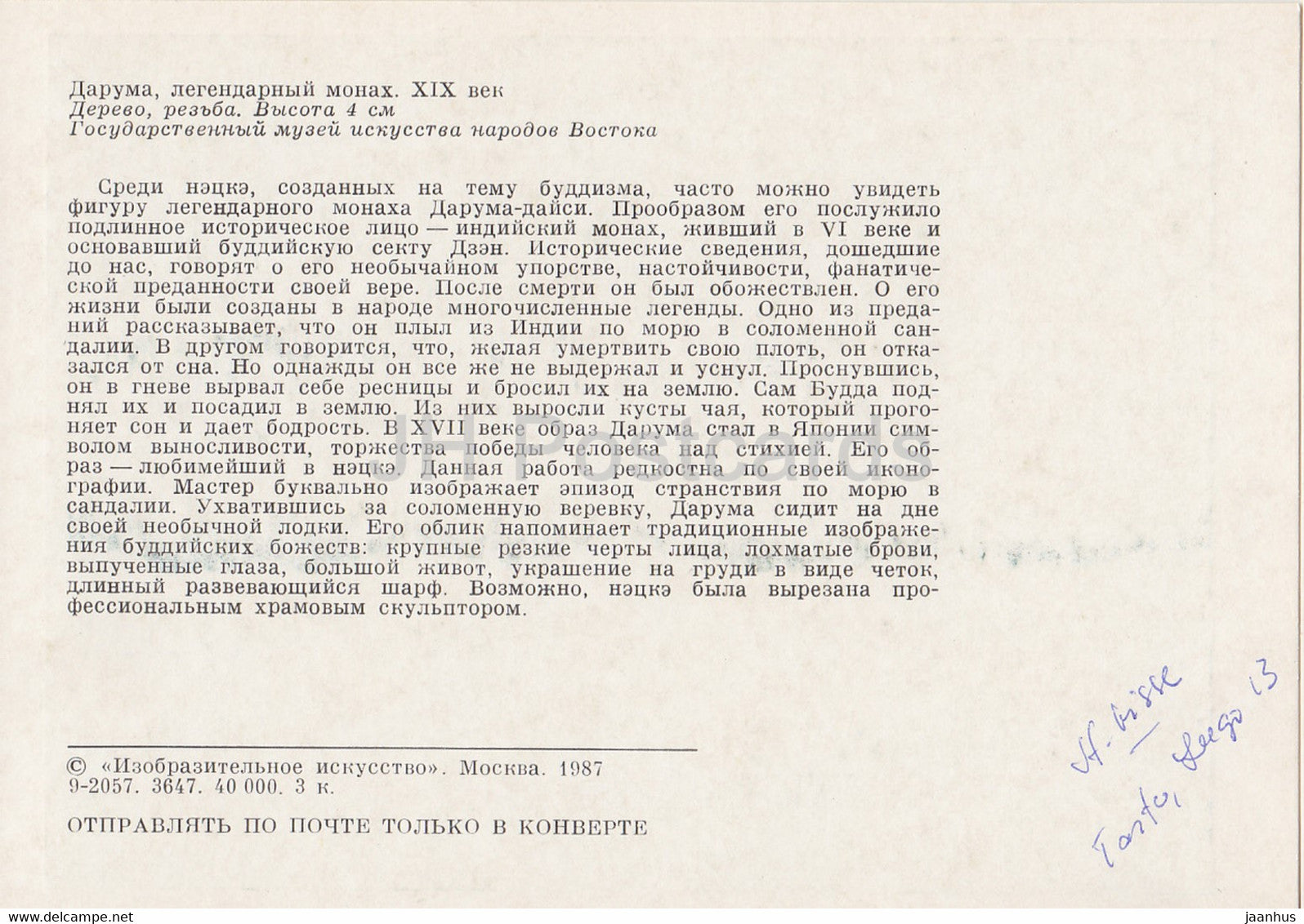 Netsuke - Daruma - wood - Japanese art - 1987 - Russia UUSR - unused