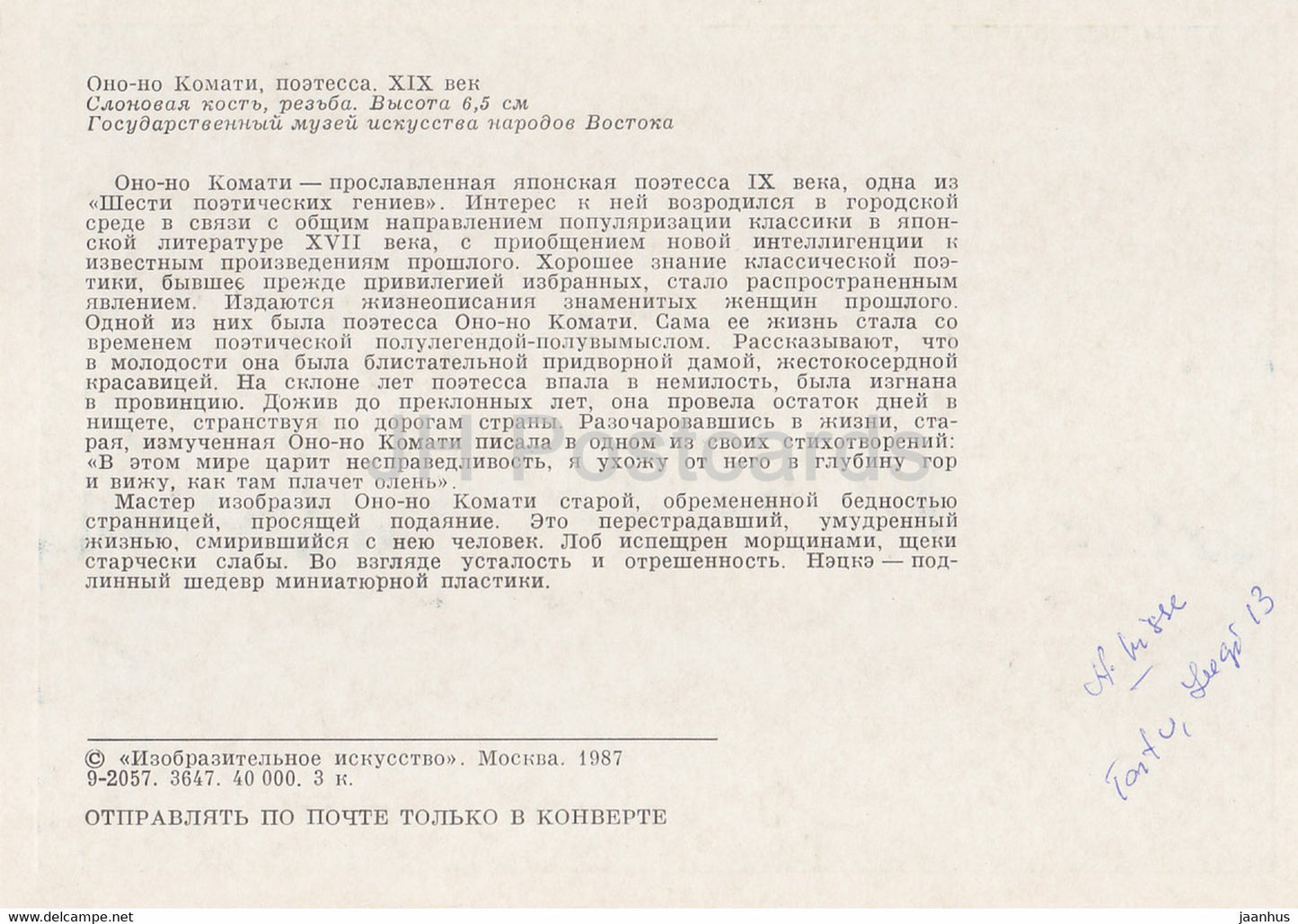Netsuke - Japanese Poet Ono no Komachi - ivory - Japanese art - 1987 - Russia UUSR - unused