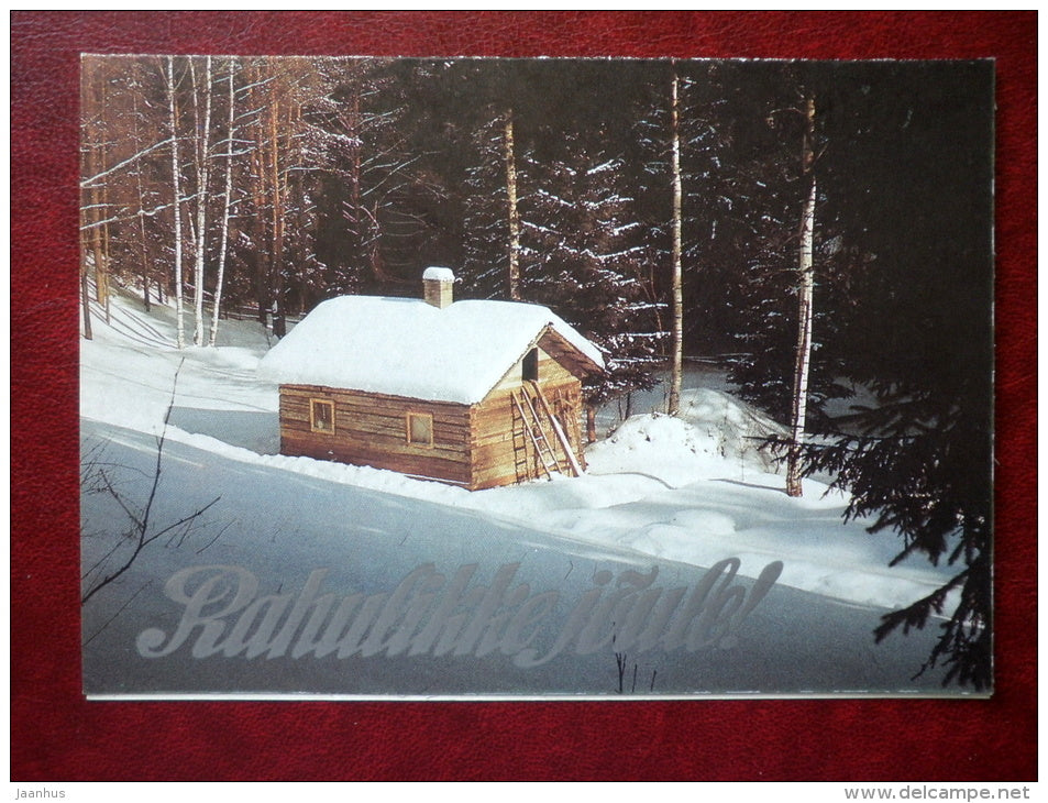 New Year and Christmas Greeting card - winter hut - 1989 - Estonia USSR - used