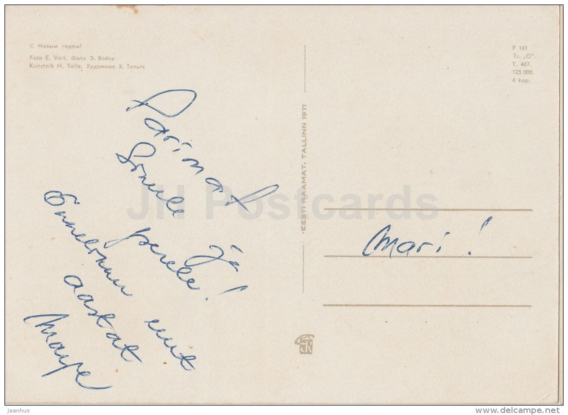 New Year Greeting card - 1 - apples - cones - candies - 1971 - Estonia USSR - used