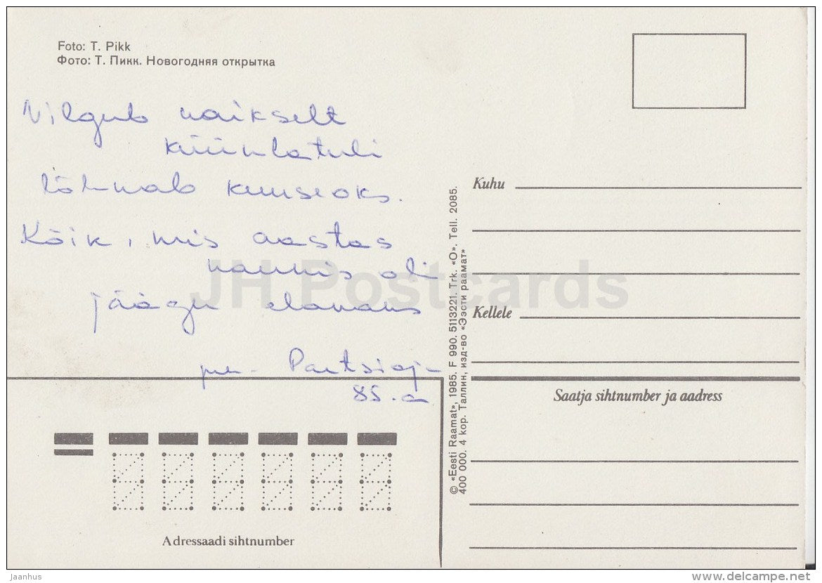 New Year Greeting card - 1 - Birch bark bag - beer mug - apples - 1985 - Estonia USSR - used
