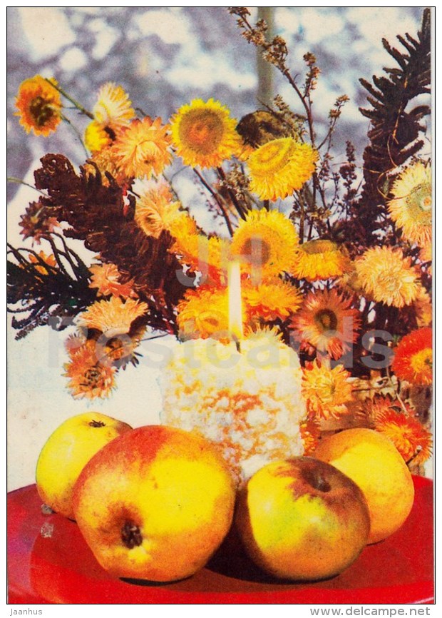 New Year Greeting card - 1 - candle - apples - flowers - 1979 - Estonia USSR - used