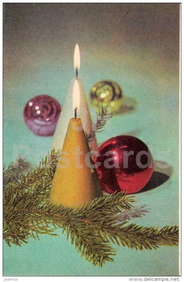 New Year Greeting card - 1 - candles - decorations - 1972 - Estonia USSR - used