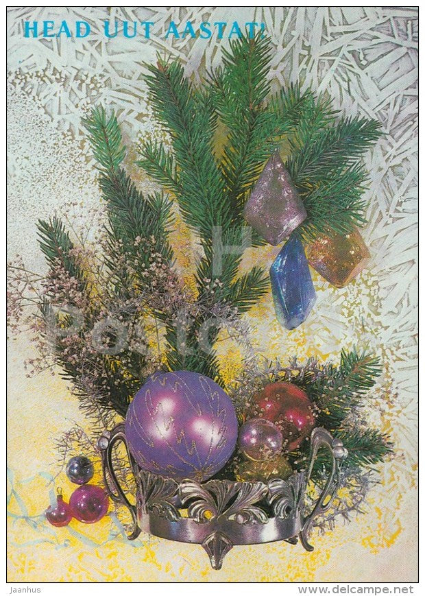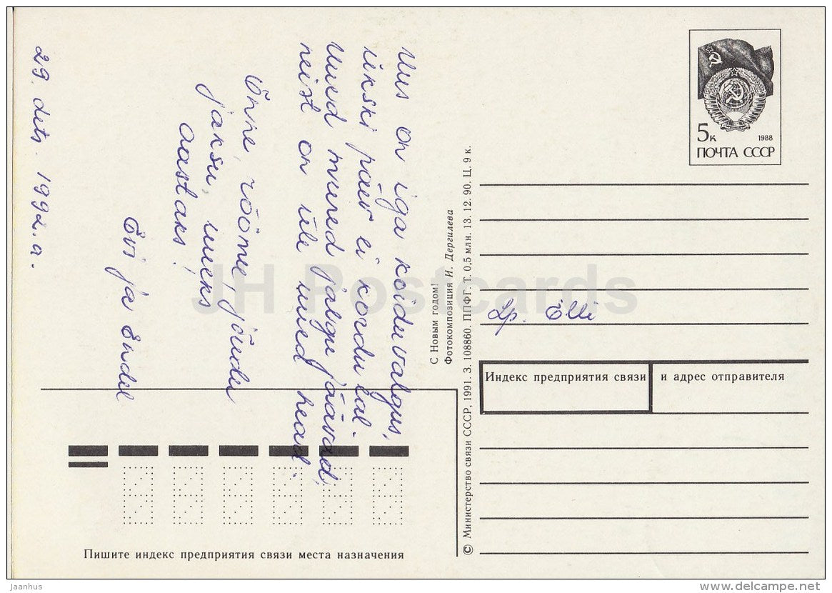 New Year Greeting card - 1 - decorations - 1991 - Estonia USSR - used