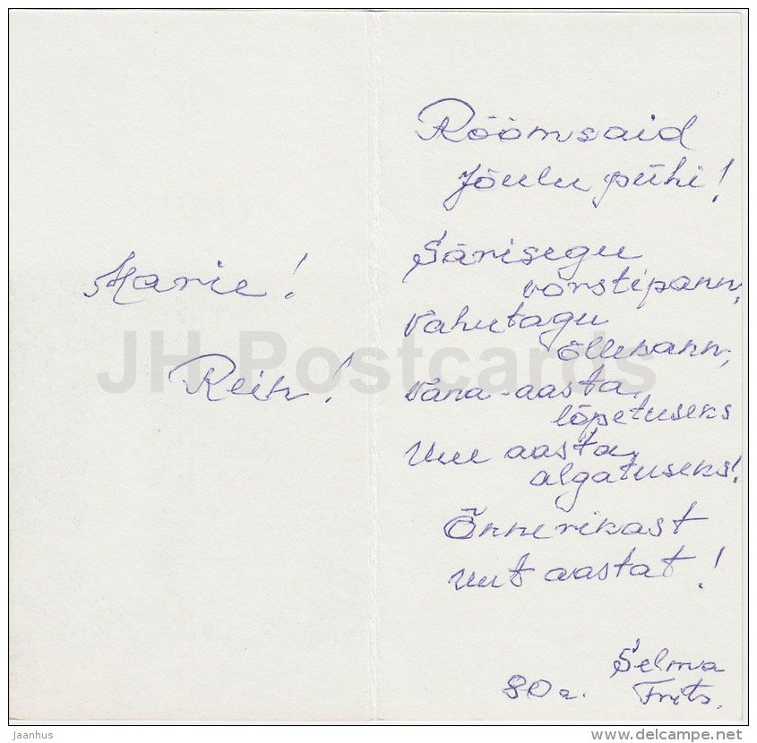 New Year Greeting Card - 1 - decorations - alarm clock - candle - 1980 - Estonia USSR - used