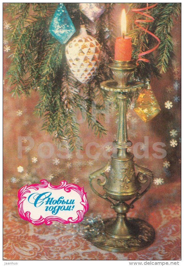 New Year greeting card - 1 - decorations - candle - postal stationery - AVIA - 1978 - Russia USSR - used
