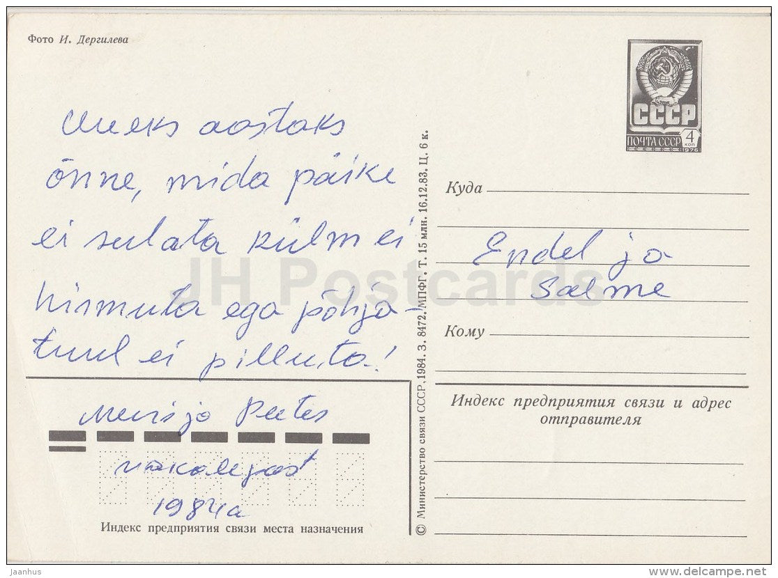 New Year Greeting Card - 1 - decorations - clock - candle - postal stationery - 1984 - Russia USSR - used