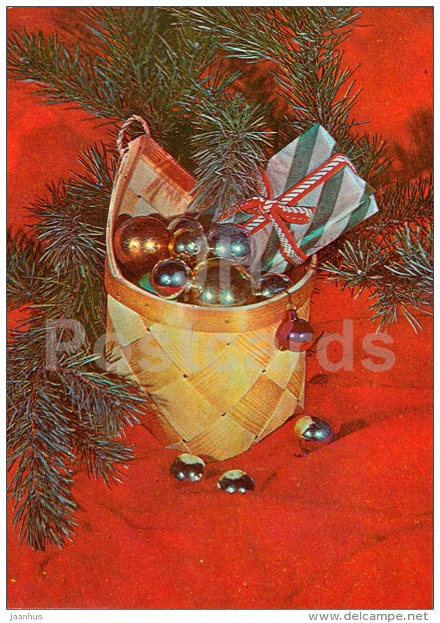 New Year Greeting card - 1 - decorations - gifts - 1982 - Estonia USSR - used