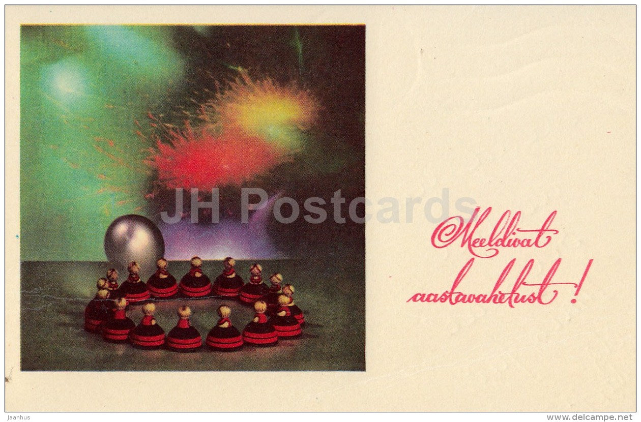 New Year Greeting card - 1 - dolls in Estonian folk costumes - 1972 - Estonia USSR - used
