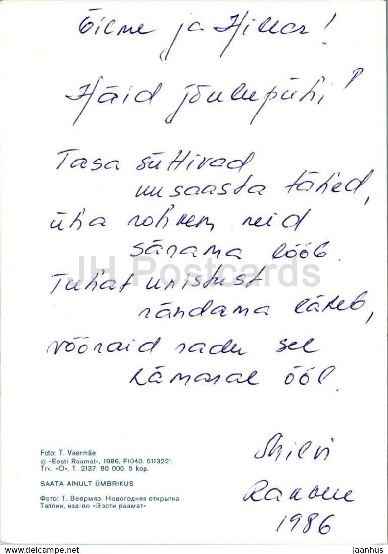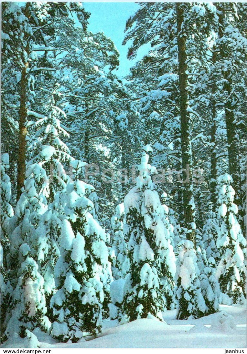 New Year Greeting card - 1 - winter forest - fir trees - landscape - 1986 - Estonia USSR - used